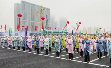 10月15日上午,在濛濛细雨中,2022年第19届亚运会杭州市场馆及设施建设行动大会暨亚运场馆开工活动在杭州奥体中心体育游泳馆项目现场举行,这标志着杭州亚运会筹备工作进入一个全新的阶段。