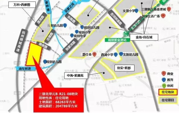 今日晚间,杭州市国土资源局挂牌6宗土地,包括5宗商业及交通场站用地,1宗住宅用地。其中住宅用地为三墩北单元B-R21-08地块,总建筑面积204789平方米,起始楼面价10875元/平方米。